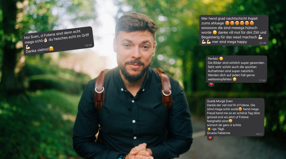 Ich arbeite wie ein stiller Gast. Kein grosses Equipment, kein Aufsehen und kein Stress. Als wär dein bester Freund mit der Kamera dabei.
